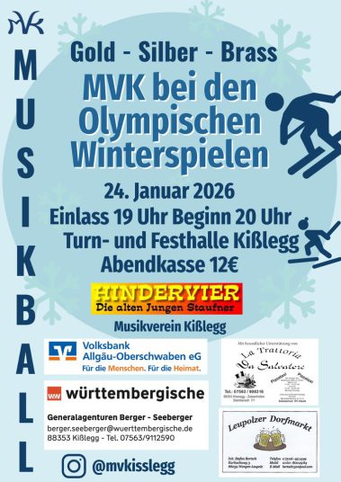 Am Samstagabend, den 24. Januar 2026, verwandelte sich die Turn- und Festhalle Kißlegg in eine olympische Arena der besonderen Art. Nahezu bis auf den letzten Platz gefüllt, bot die Halle den perfekten Rahmen für einen mitreißenden Musikball des Musikvereins Kißlegg.