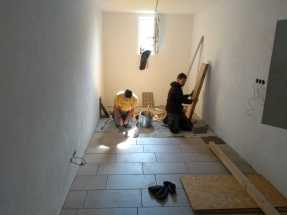 Der Proberaum wurde komplett leer geräumt und alle Schränke sowie Heizkörper etc. abmontiert