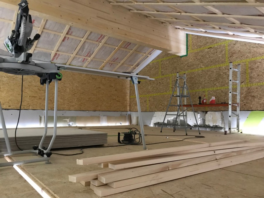 Weitere Dämmarbeiten und Montage der OSB Platten